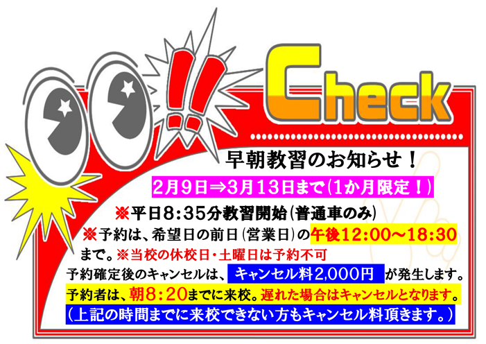 | 早朝教習実施のお知らせ |