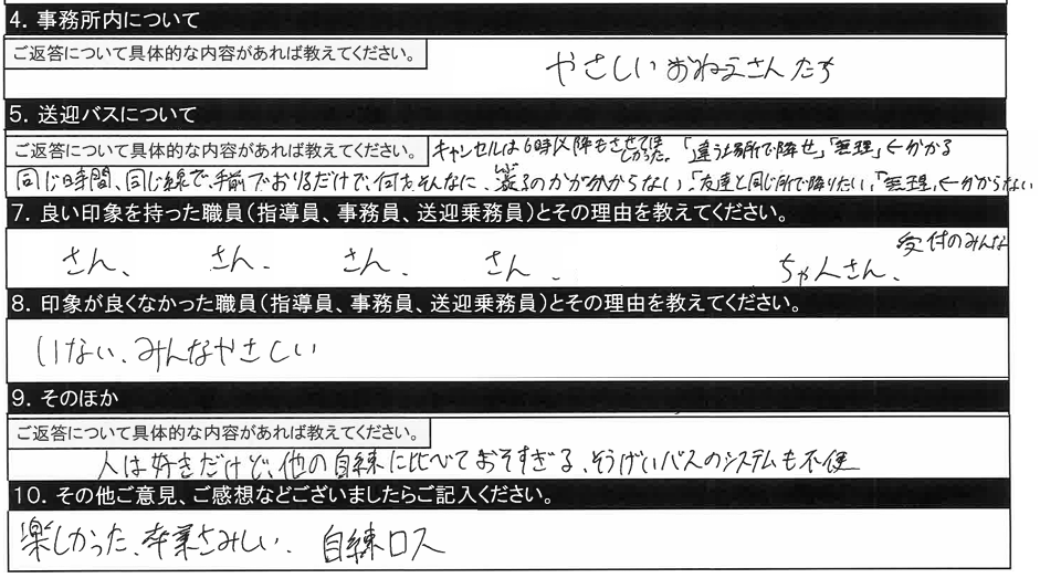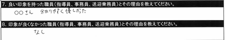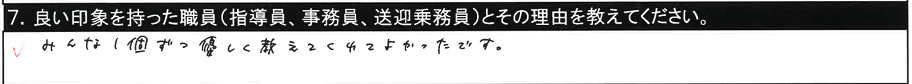 7.良い印象を持った職員/〇〇指導員、○○指導員(指導が丁寧で分かりやすかった) |