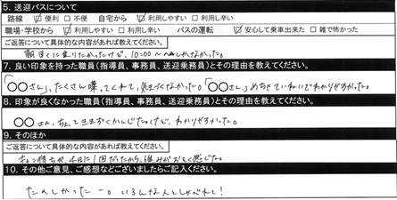 5.送迎バスについて/主に琉大線を利用していたのですが、乗り降りの際、こちらを見て挨拶してくださいました。