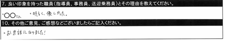 7.良い印象を持った職員/〇〇・〇〇・〇〇・○○指導員 ていねいに教えてくれるしわかりやすい |